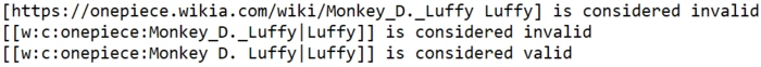 - If the verse page's name has some additional text (such as verse or franchise in brackets), then you have to remake the link in the way without it – only the actual name must be kept.