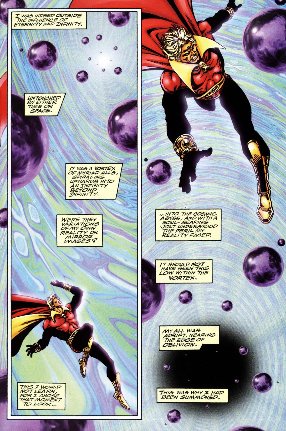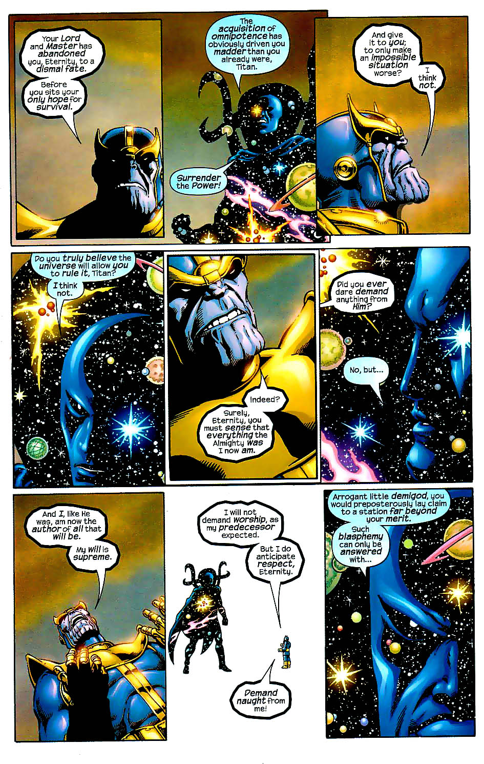 Attack Potency: Boundless (He is the Supreme Creator of the "Omniverse," i.e. everything in Marvel Comics, and is immensely greater in power than all other characters combined, as they are all extensions of himself. Has been called "The author of all that is." Marvel Comics has outerversal characters such as Oblivion, and has shown realms / locations beyond all dimensional space)